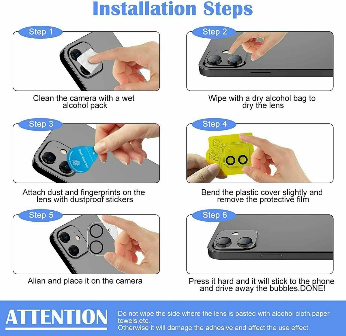 The camera lens protector with oleophobic layer prevents water, oil,dust. Keep the phone lens in HD transparent and clean all the time.
